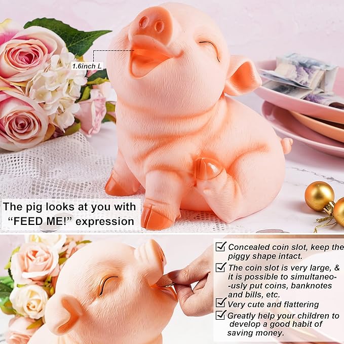 - EDUCATIONAL :Giving your child a Piggy Bank can also strengthen and develop their financial sense and ability from an early age, while they grow up with your child. When coin money jar increase little by little,cute piggy bank will be more and more heavy, your baby will be very happy, and also relatively heavy for a large piggy bank. And the first time in life about money education began