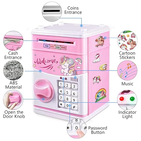 - 【Money Bank with Music Play Function】-With 11 built-in children’s songs, the music will start when you put the money into the piggy bank.